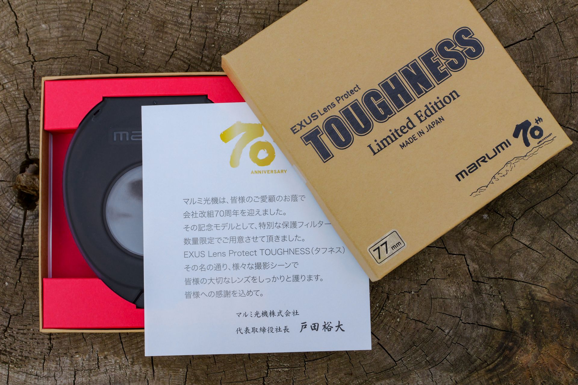 日頃愛用しているフィルターメーカー marumiさんから、70周年記念モデル「EXUS Lens Protect TOUGHNESS Limited Edition」が届いた。